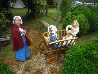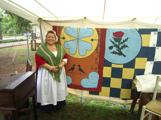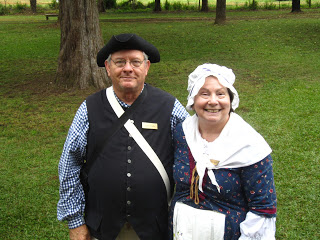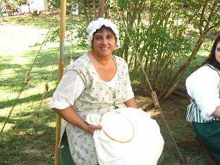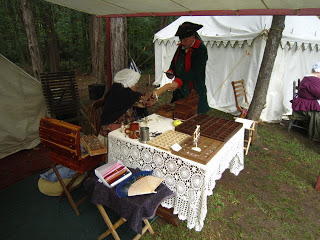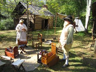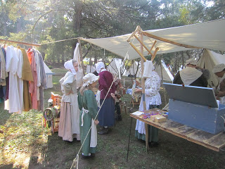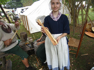 On Saturday and Sunday, October 6-7, we spent our days at Walnut Grove Plantation for Festifall. One of the most popular vendors was the toy maker. I bought a new linen cap that his wife made, and John bought the game of graces, a windmill, and a game seamen used to play called Shut the Box.