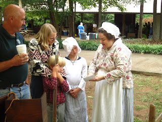 On Saturday, this reenactor was making corn husk dolls with the children. On Sunday, she demonstrated the art of healing. During these days, the mother of the family would have knowledge of herbs and their healing properties. Often she was the only doctor a family would ever have. Not only did she provide medical treatment, she made oils, poultices, and mixed medicines.